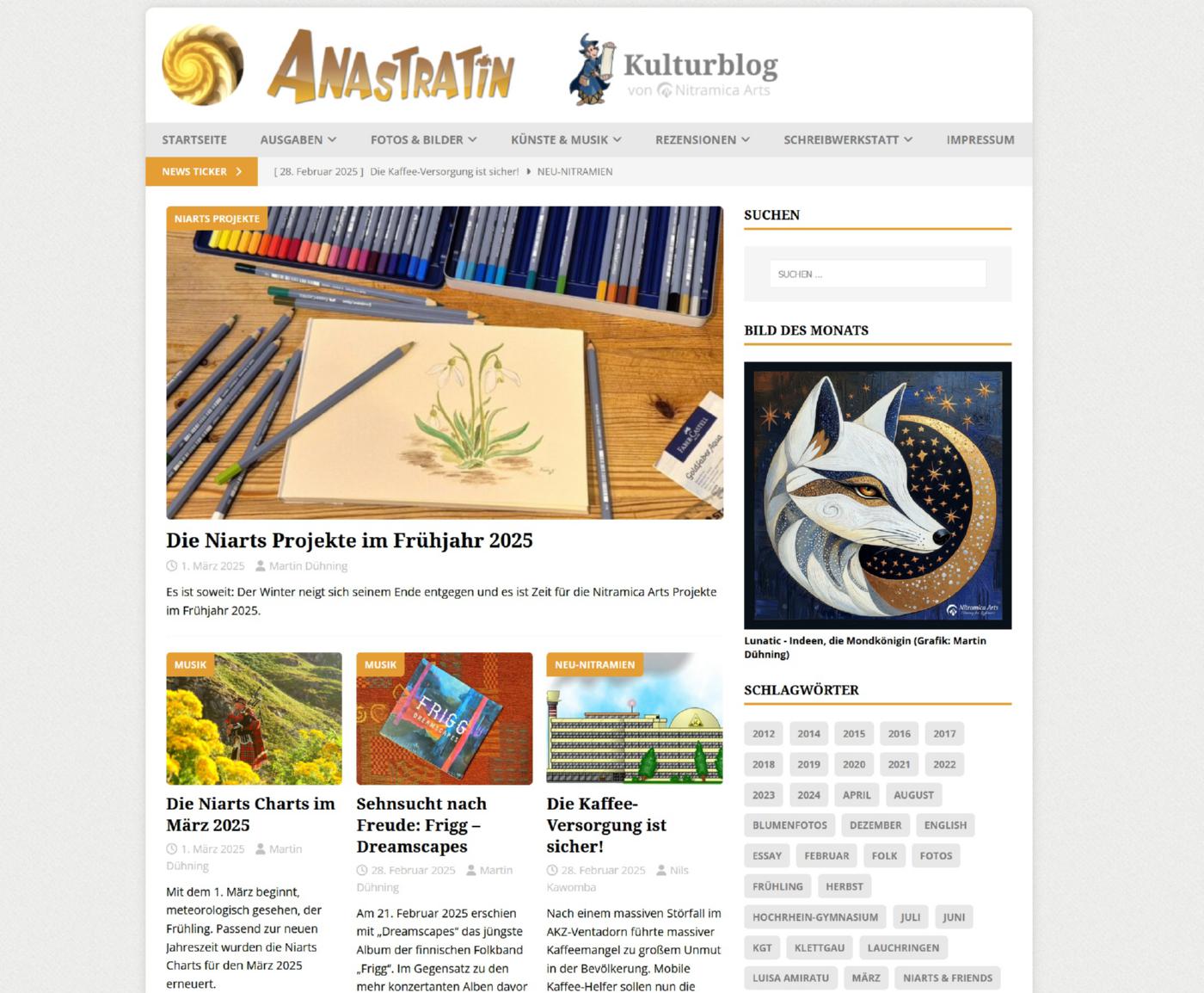 In den vergangenen 17 Jahren wurden auf Anastratin.de bereits mehr als 1800 Artikel veröffentlicht, teils von beachtlichem Umfang. Neben Martin Dühning steuerten auch Tina Stibbe, Hansjörg Dühning, Salome Leinarkunion und Thomas Zips (Reisen), Sandra Rönnau (frühe Fotoserien) sowie Jean Trecitina und Nils Kawomba Artikel bei.